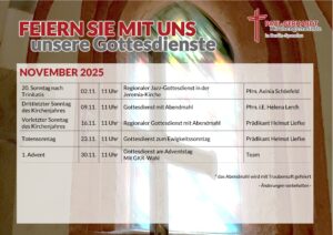 Wir feiern unsere Gottesdienste am Sonntag um 11.00 Uhr.